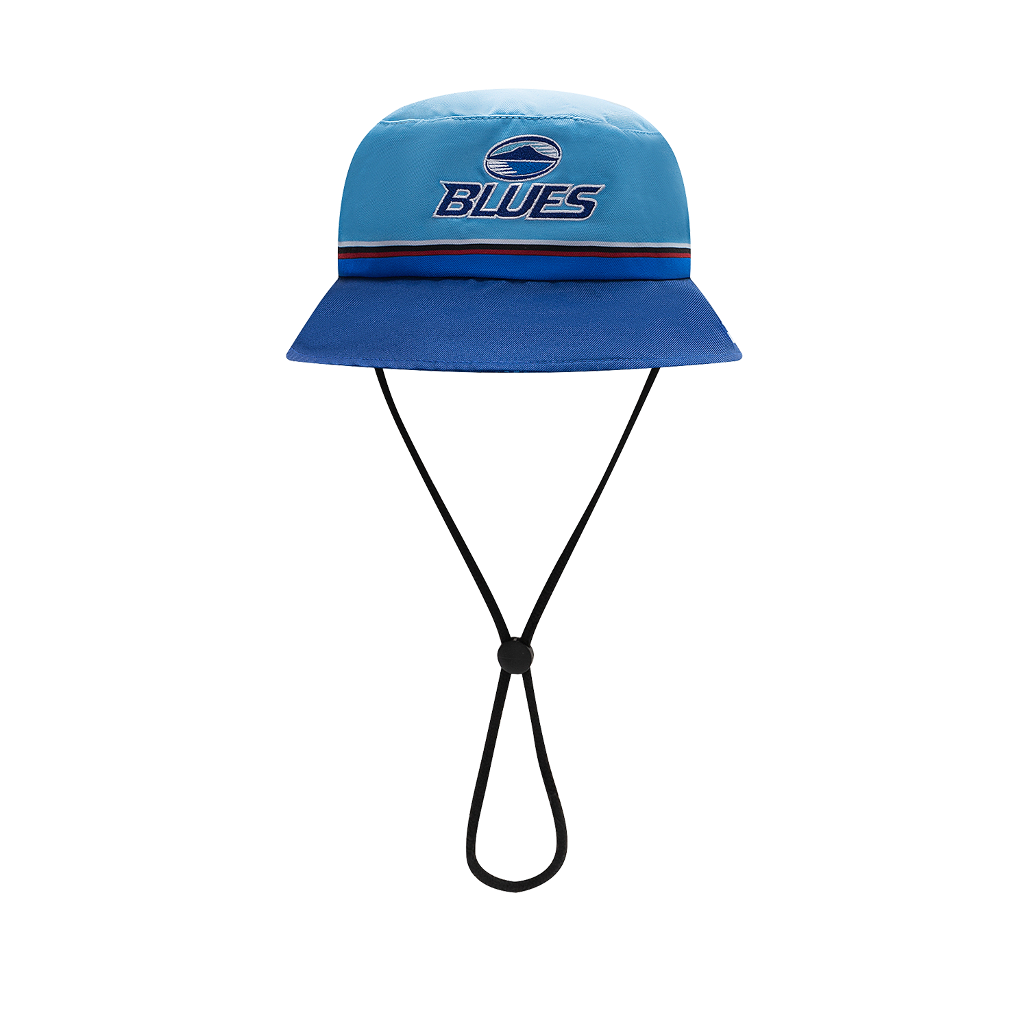 Blues heavy brushed cotton bucket hat in team colours with stripe detail and drawcord. Embroidered club logos. Ideal protection from the sun during rugby training or recreation.