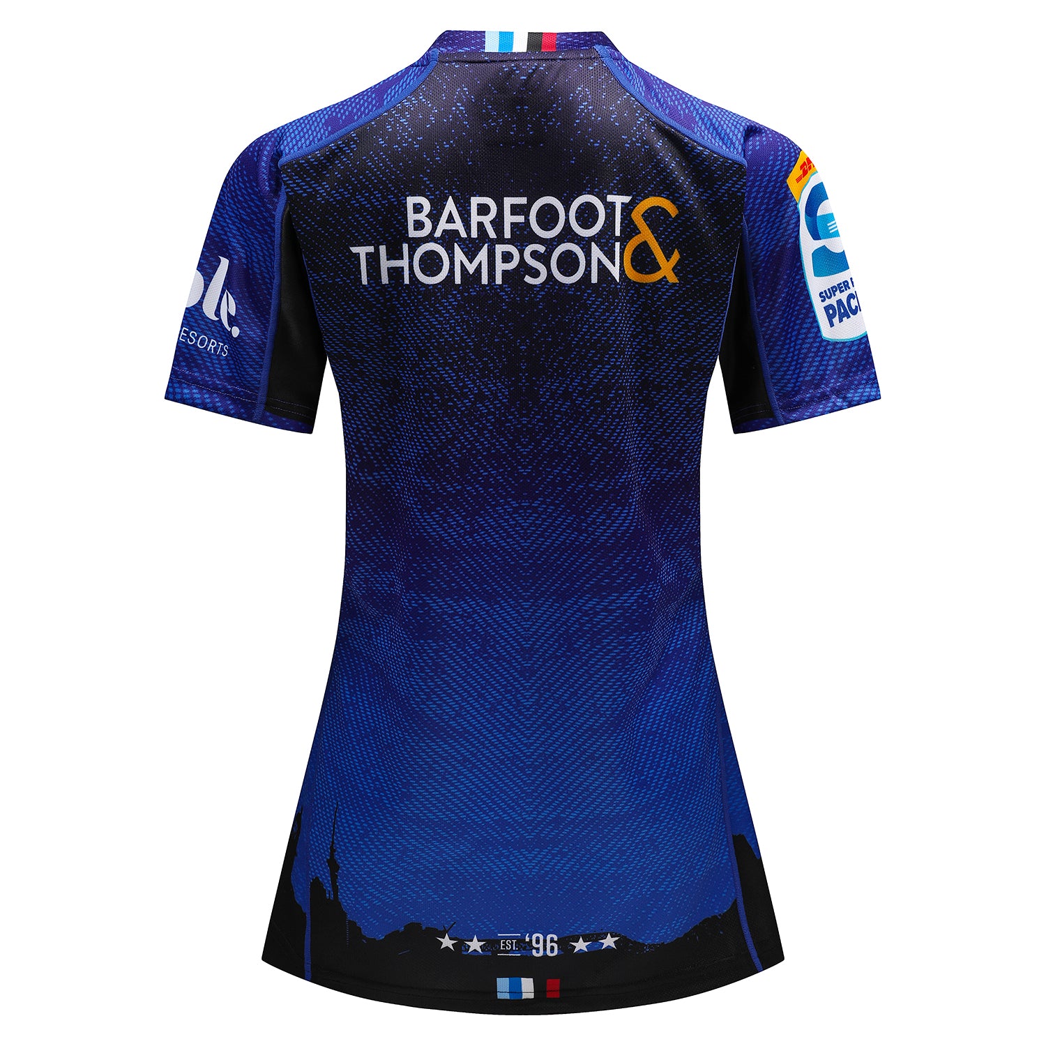 Blues sublimated replica jersey with rib collar and cover stitch seams for comfort and performance. Bound hem and sleeves with embroidered chest logos, printed sponsors and Anti-Microbial and Wickable finish. STAY COOL Tech fabric.