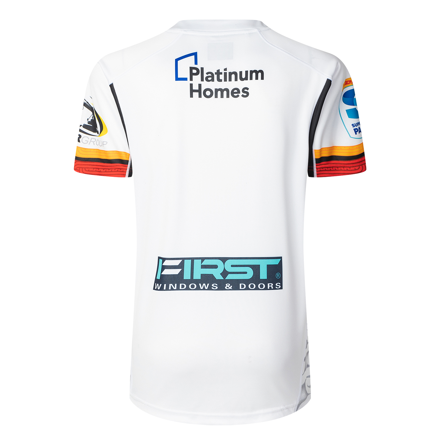 Chiefs sublimated replica jersey with rib collar and cover stitch seams for comfort and performance. Bound hem and sleeves with embroidered chest logos, printed sponsors and Anti-Microbial and Wickable finish. STAY COOL Tech fabric.