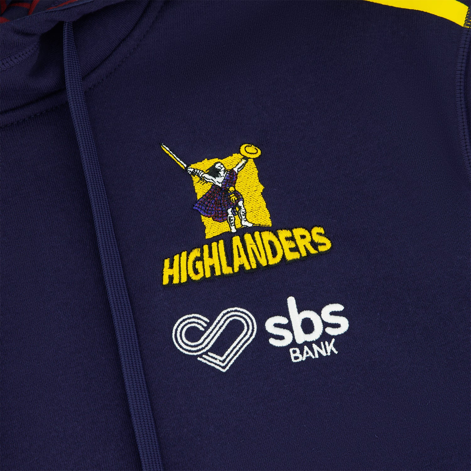 Highlanders replica pro fleece training hoodie in team colours. Soft and comfortable 100% Polyester fabrication. Club logo on left chest with lined hood, drawcords and kangaroo pocket.