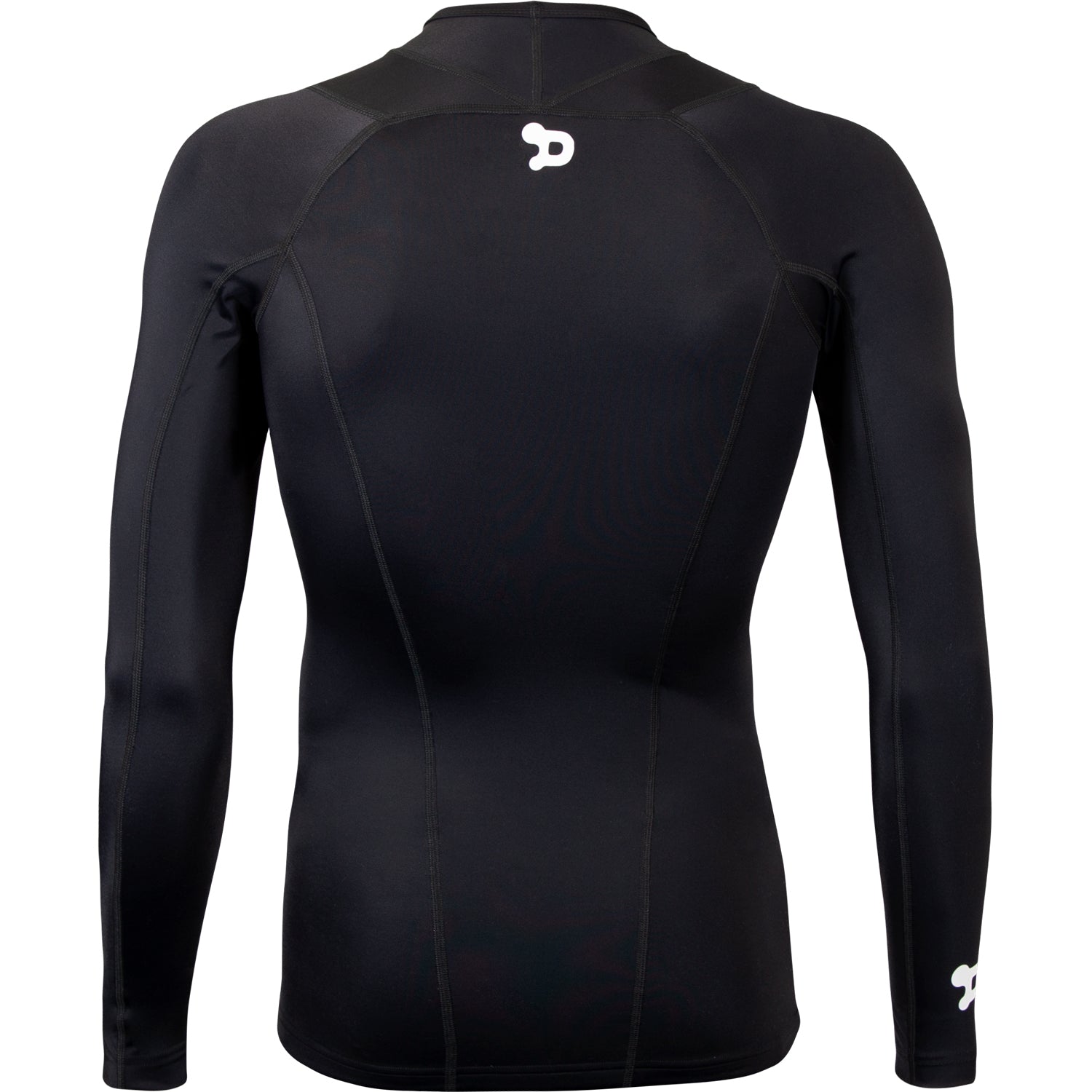This eight panel constructed compression top utilizes flatlock seams strategically placed to lift, support, and engage muscle groups, tendons, and ligaments. The diamond shaped panel on the back, along with the seams over deltoids and the lats, is designed to pull your shoulders back, for maximum impact on your posture. The long torso featuring a half inch silicon waistband on the inside of the bottom hem ensures the shirt will never ride up on you.