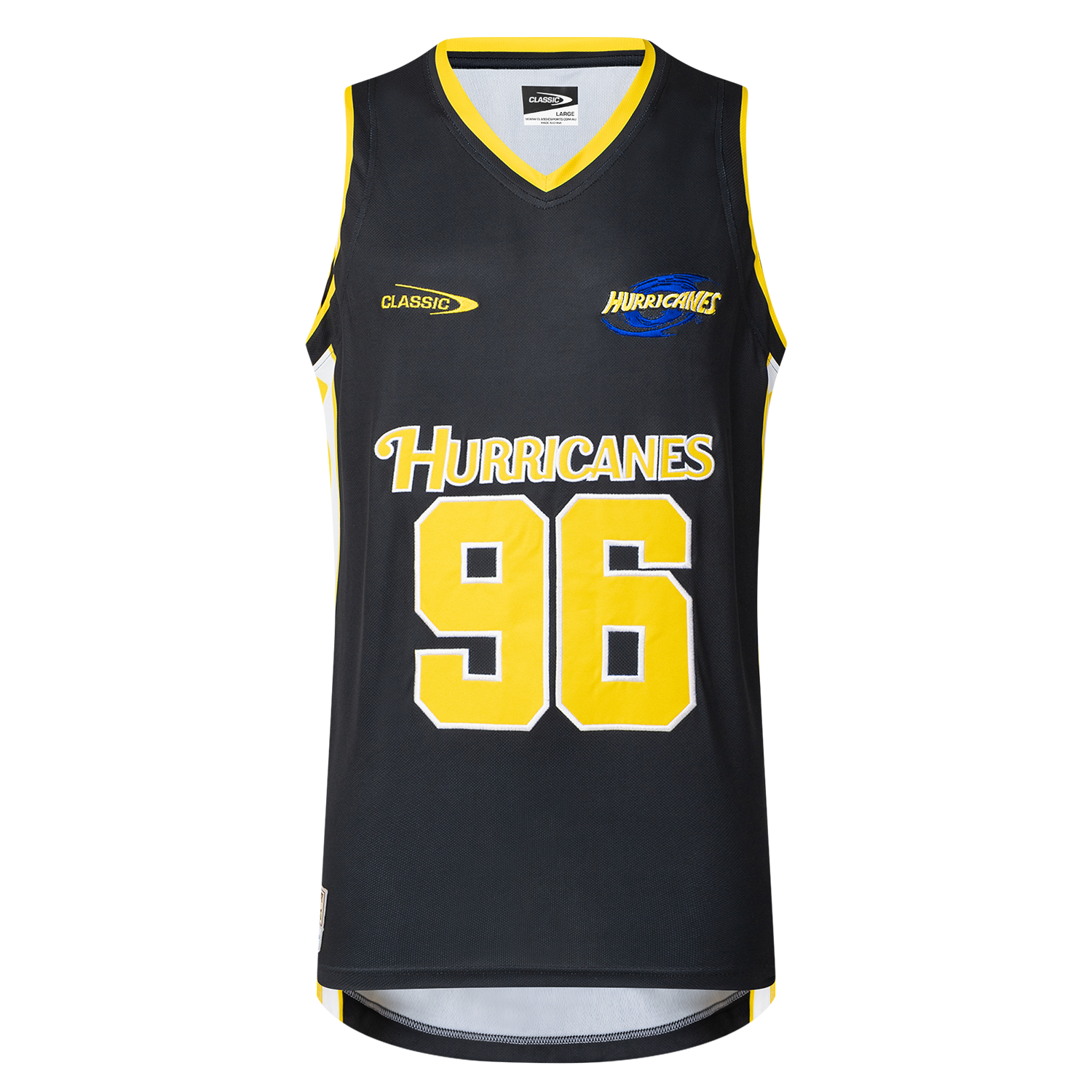 Hurricanes basketball-style singlet. Polyester performance fabrication. Quick dry and doesn't require ironing. Polyester moisture wicking fabric with printed numbers and embroidery logos. Great for training or general wear.